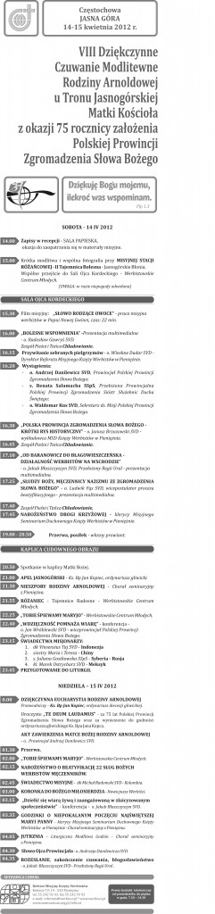 Plan czuwania Rodziny Arnoldowej na Jasnej Górze